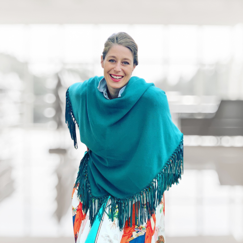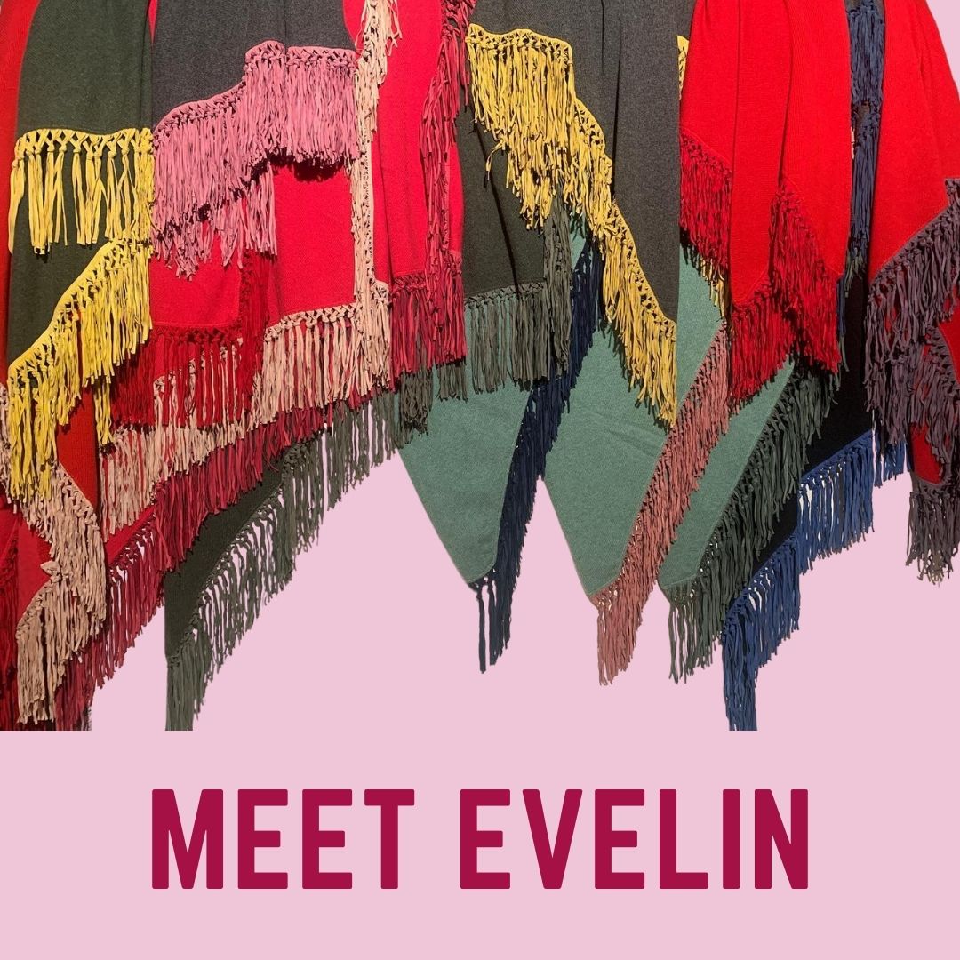 EVELIN is our Cashmere triangle IT-Piece "Alma" with leather fringes.